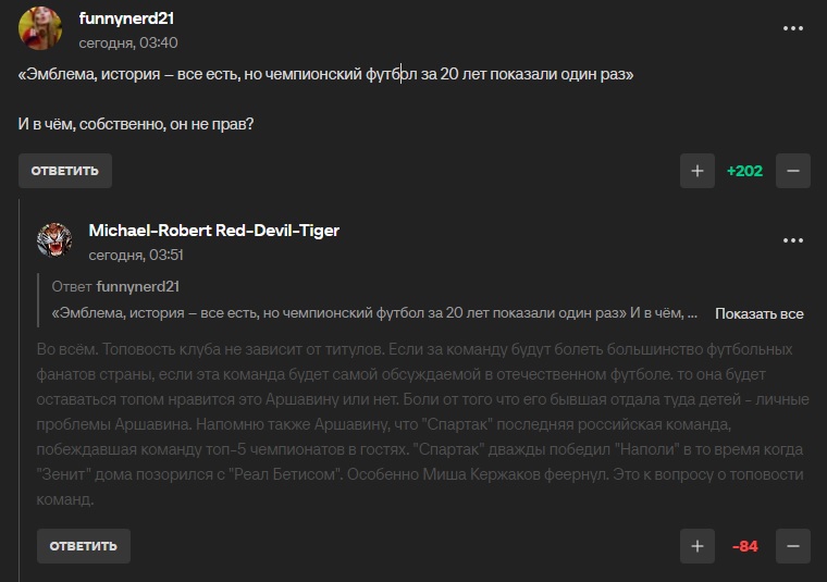 @monkey бля, в нулевых цска реально светил баблом судейкам, вспомни матч с сатурном в 05-м, колобаев пенальти на ровном месте дал, потом фсб отменила, газзаев орал на рефери как на щенка. инсайды из архивов ходят, что армия через есауленко бабки крутила, но докажи теперь. все тогда так ебали, спартак не лучше был с его титулами на коленке.