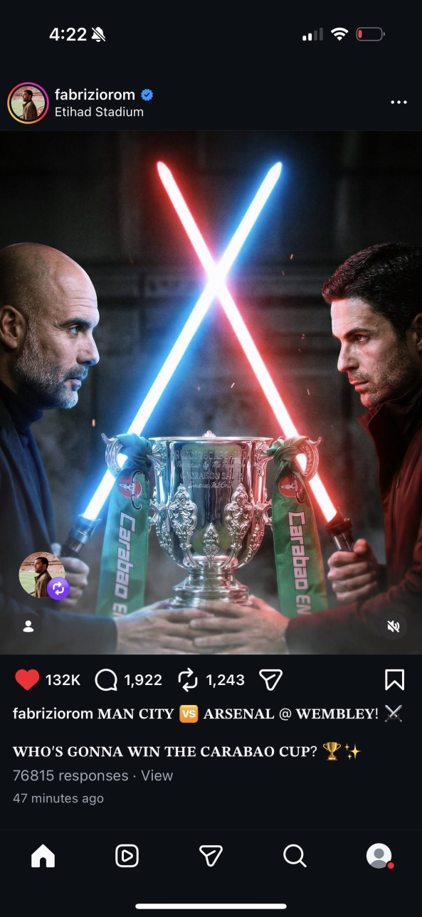 Финал МС - Арсенал шанс Пепа сломать Артете психику, сейчас едва ли не всё зависит от адекватности Артеты. Наверняка он применяет всякие ментальные трюки, но каждый раз перед сном его накрывает мечта о требле, а то и о секступле - они фавориты везде, где участвуют Имажинирую секступл у Арсенал, а у Реала требла нет даже, вот это футбол