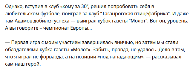 это тролленк? кроме затянувшегося прикола с пенальти, сафонов очень неуверенно играет. защитниками не руководит, много лишних суетливых движений да я специально слежу за ним без мяча, дрищ - слаб физически, застаивается в раме когда нужно выбегать на перехват