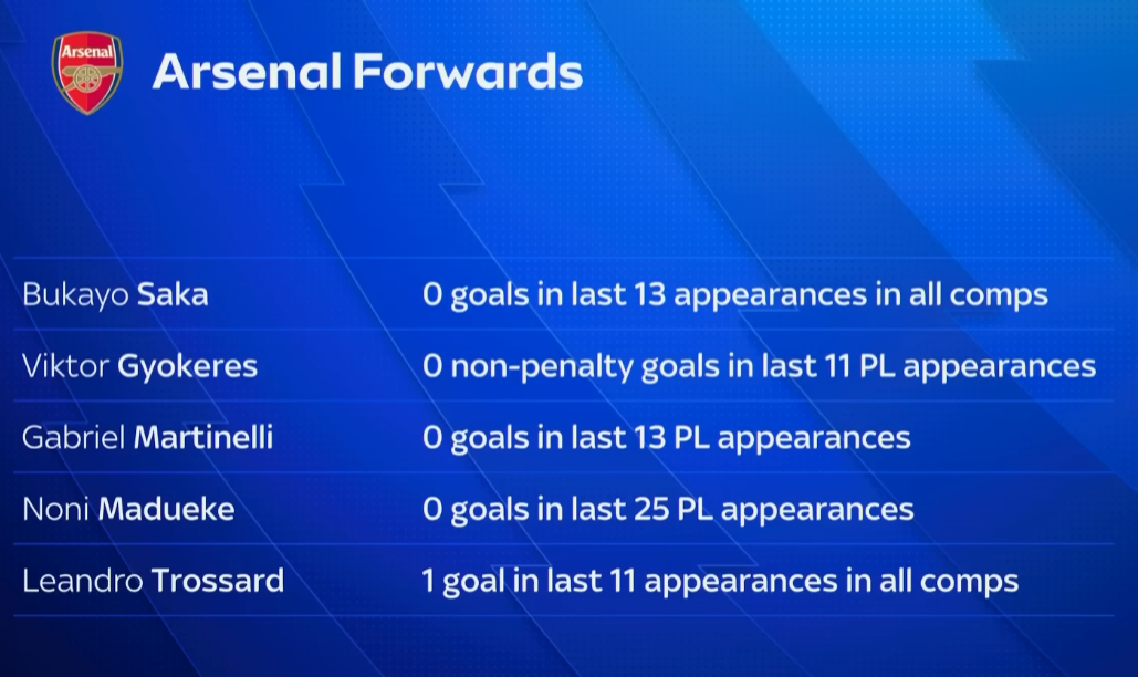 у арсенала реально проблемы с забиванием голов в больших матчах. трясунчик артета 5 лет строит душную антифубольную помойку "лишь бы не пропустить". без читерских угловых с нападением на вратаря очков было бы сильно меньше.