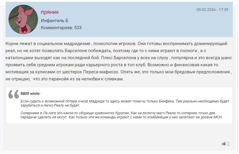 Я с детства за Реал, но ты не прав, каталонский хозяин, наш вонючий клуб не может даже альбасете обыграть, о чём уж говорить, только получаем по 3-4 мяча от любой команды((