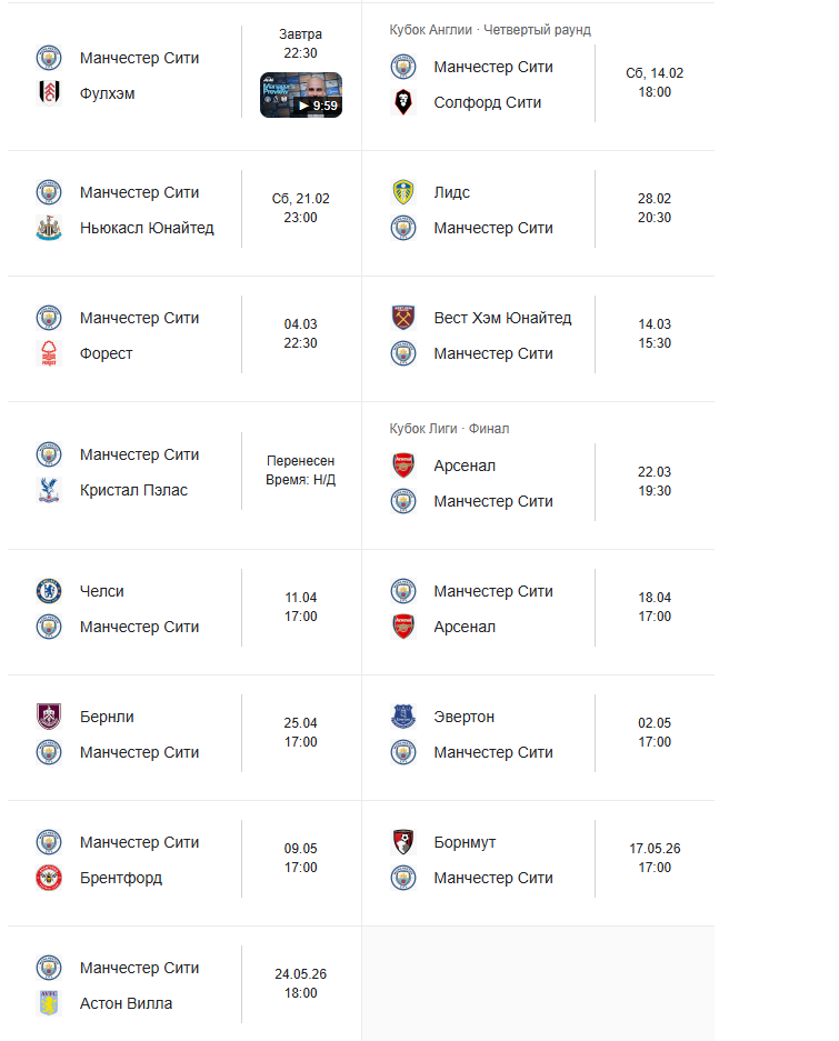 Календари примерно равные, а местами одинаковые. У обоих Челси, Ньюкасл (но мы с ним плохо играем), в целом даже Брентфорд может зацепиться послезавтра. У Сити Вилла в последнем туре, мб уже будет матч ни за что.