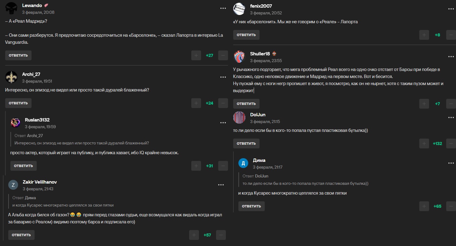 >>3434902 >В очередной раз скажи спасибо Барселоне Да, спасибо путалоне что порадовали весь футбольный мир очередным путалоноёбом))) Читай комменты на спортсе, там все радуются и злорадствуют, кааайф бхаха