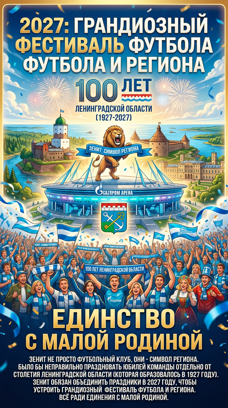 Зенит обязан объединить праздники в 2027 году, чтобы устроить грандиозный фестиваль футбола и региона