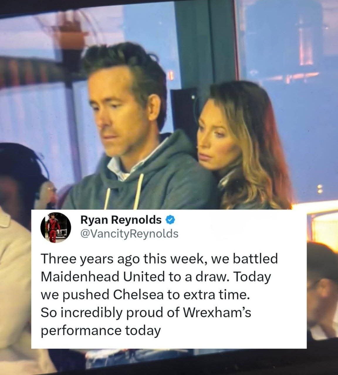 "На этой же неделе три года назад мы сражались за ничью с "Мэйденхед Юнайтед". Сегодня затащили "Челси" в овертайм. Горжусь перформансом "Рэксхэма" сегодня".