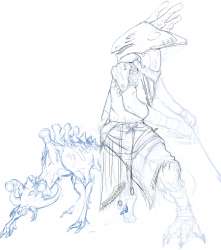 >>174352Сверху или вдоль получалось не по перпективе, ведь ветка уходит вдаль, а лапа её почти всю занимала. Начальная идея была рисовать их скрещенными перед собой, но тогда они во первых получаются слишком маленькие, а во вторых другую лапу не получается правильно положить. Есть и компромиссный вариант, вытянуть их немного вперед, и скрестить только в районе запястий, но тут вообще все проблемы вместе. Можно конечно "помочь" сучком или веткой, но хотелось бы по честному.
