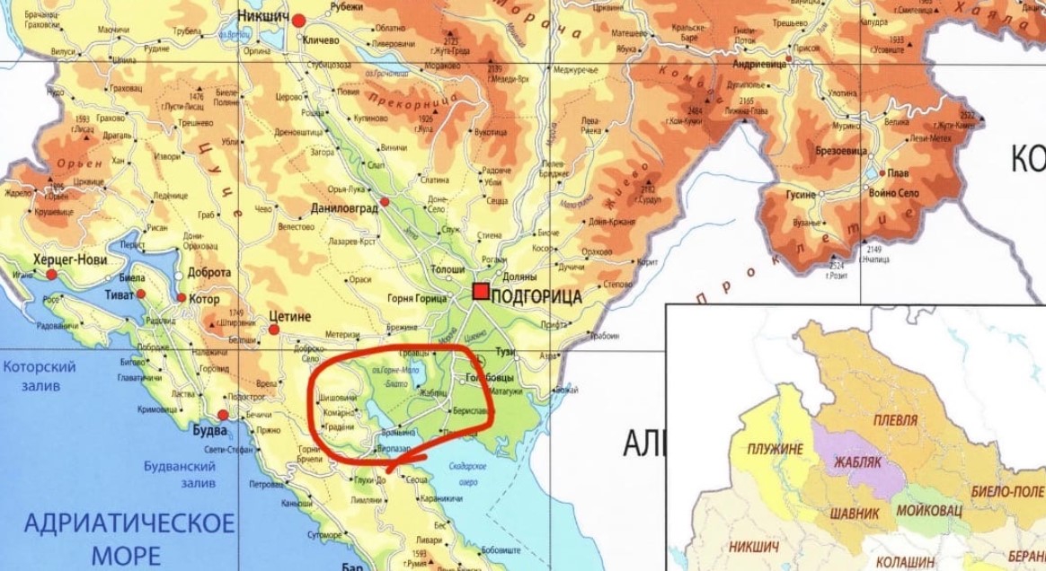 Если взглянуть на карту Страны Смешариков, то мы увидим, что море у них на юго-востоке. У Черногории же выход к морю на западе/юго-западе. Однако, есть Скадарское озеро. Горы в Стране Смешариков на северо-востоке, так что местоположение скорее всего к востоку от Комарно. А может и ещё восточнее, чем я отметил.