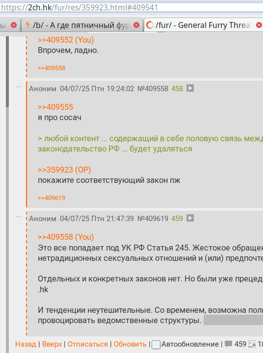 Перед тем как перейти к тредам, убедитесь, что вы ознакомились с правилами /fur/: https://2ch.hk/static/rules.html#fur