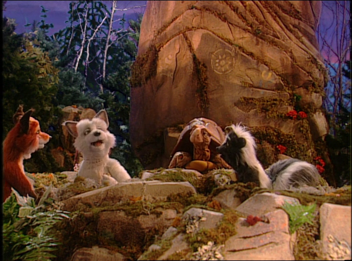 Где-то с год назад Le Sobol' мягко пиарил "Четыре души койота", а тут недавно наткнулся на что-то похожее: малоизвестный кукольный сериал 2000 года, в котором зверюги разыгрывают сюжеты традиционных мифов коренных канадцев. В сериале есть главный герой, попаданец-койот по имени Дуайт, который буквально упал с неба и теперь постигает житейскую мудрость вместе с местными жителями: черепахой, медведем, скунсом, лисичкой и росомахой.