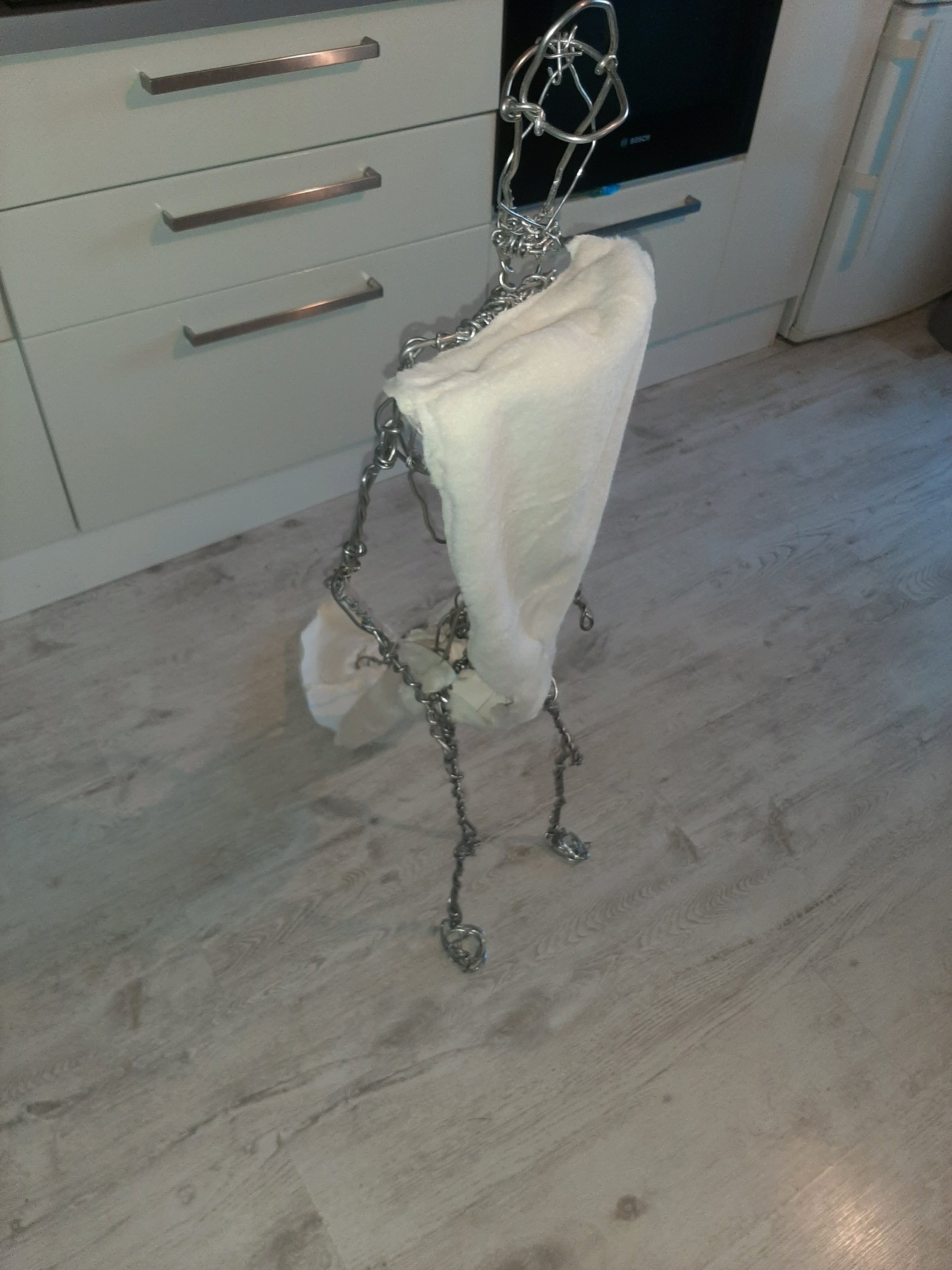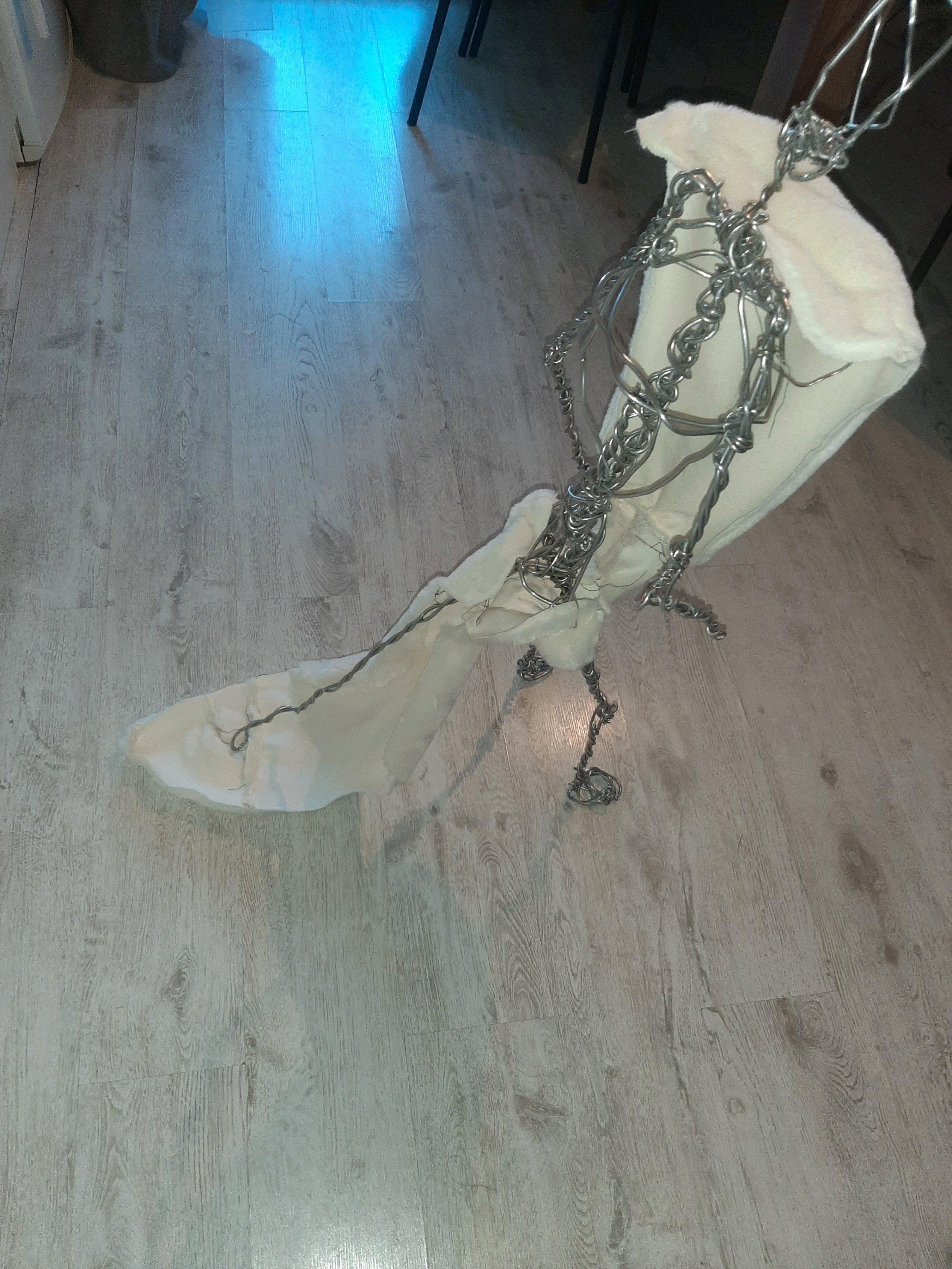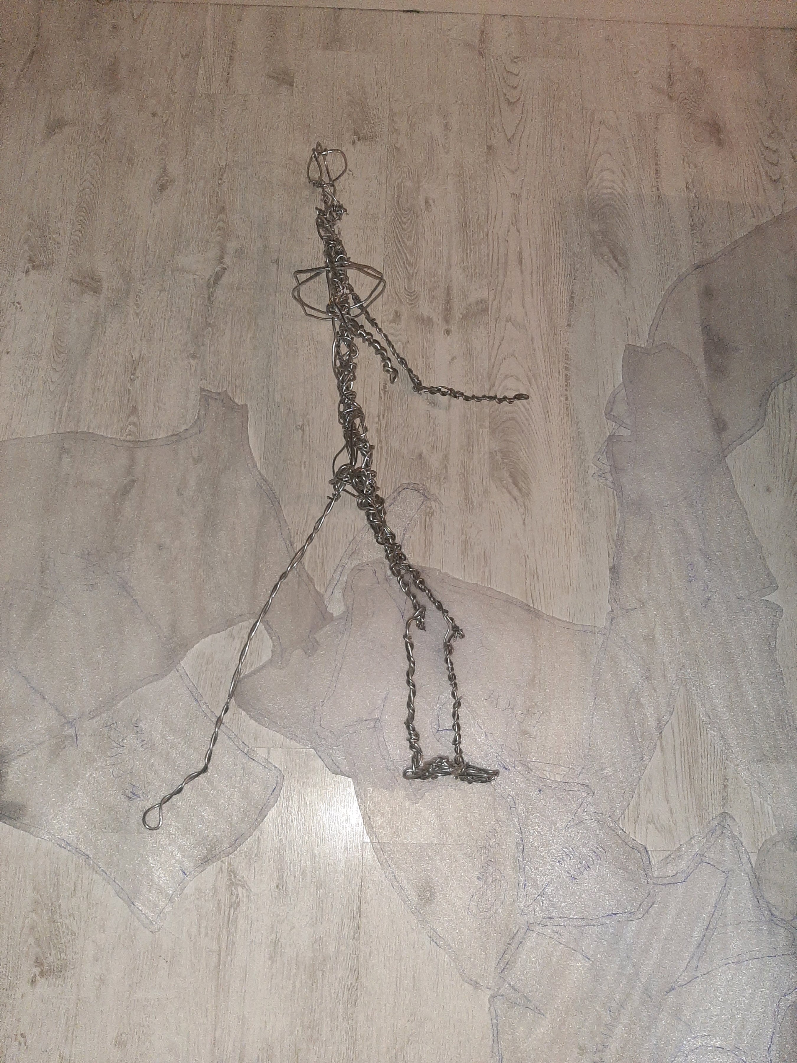 Общий прогресс по Наначи: Купил метериалы для обивки, купил швейную машинку, достал проволоку для каркаса и скрутил скелет скелет. Ростом скелет 117 см, Наначи будет под 135 см минимум.теперь пальцами гну 4мм проволоку в спиральки. Соединения плечевых и тазобедренных суставов сильно лабильные, у коленных и локтевых суставов лабильность ограничено наполовину. Голова немного подвижна.