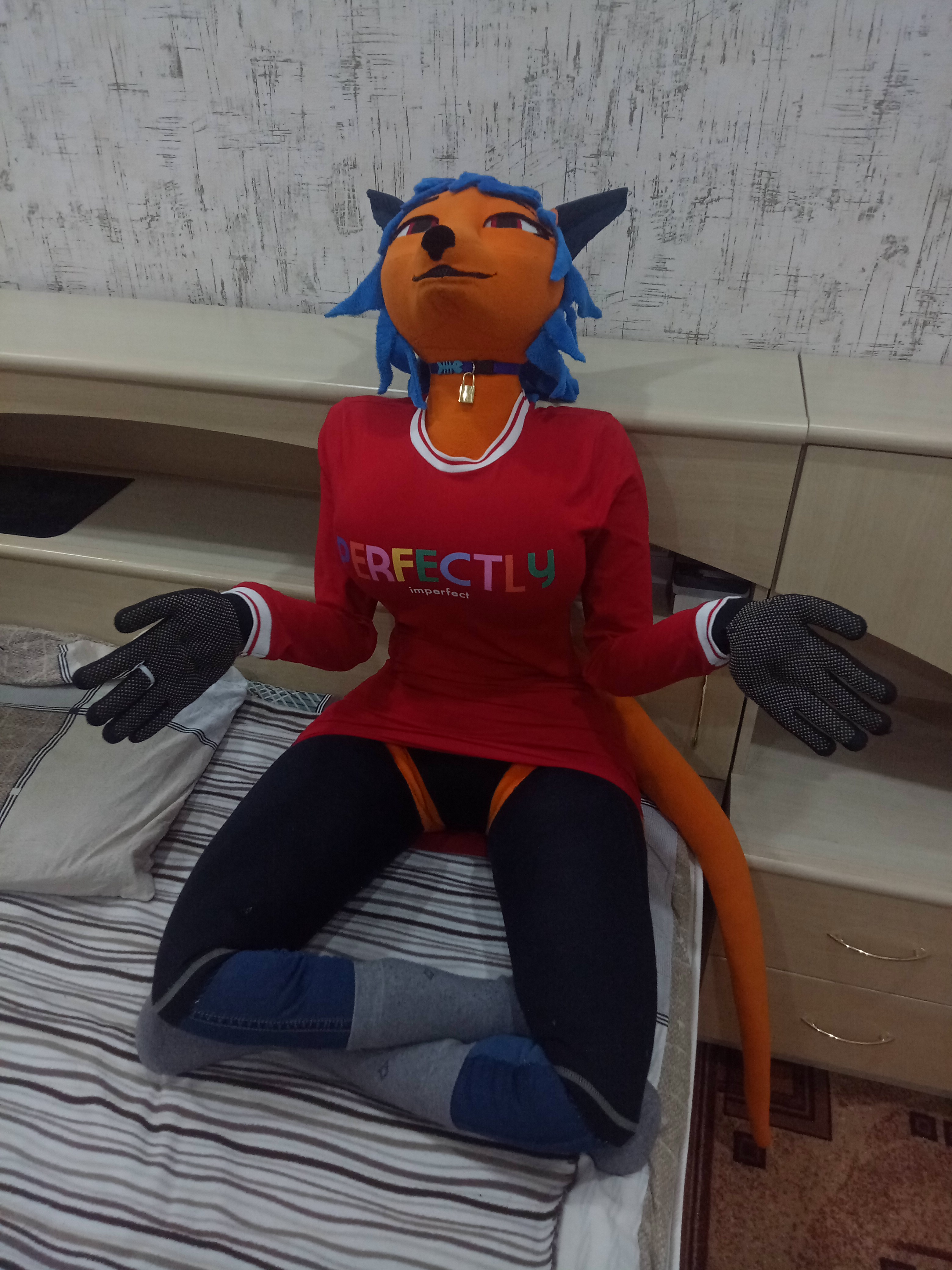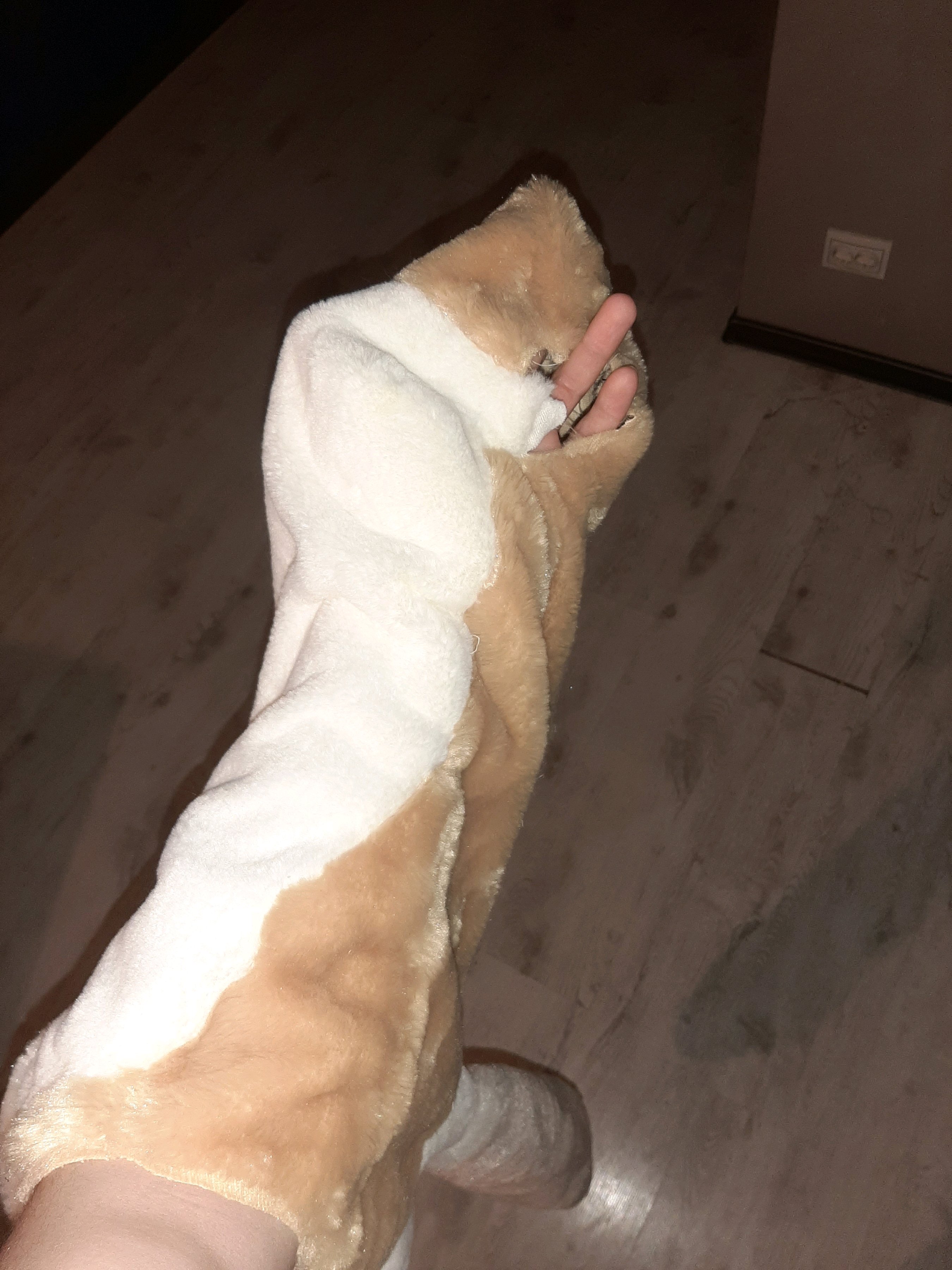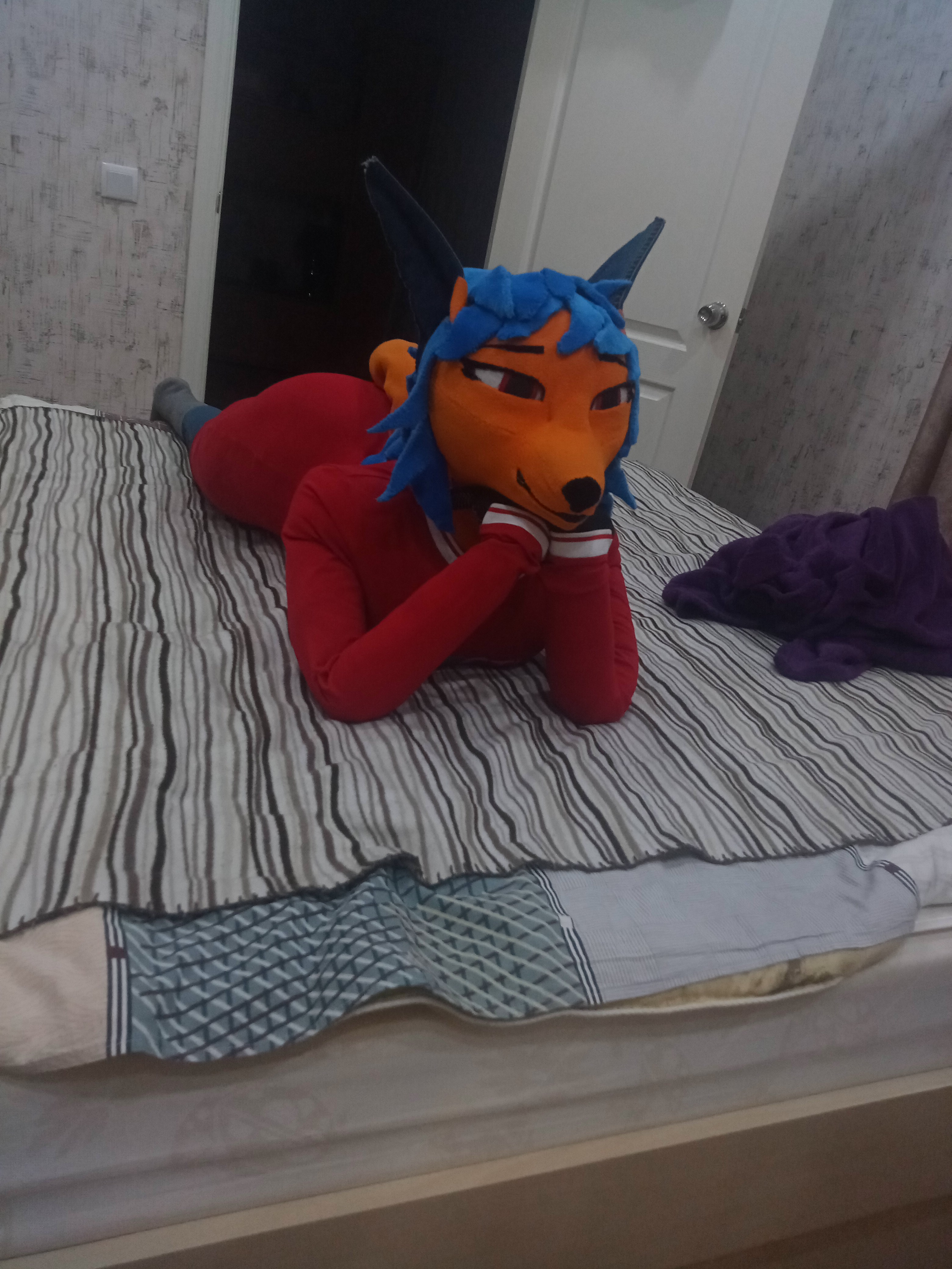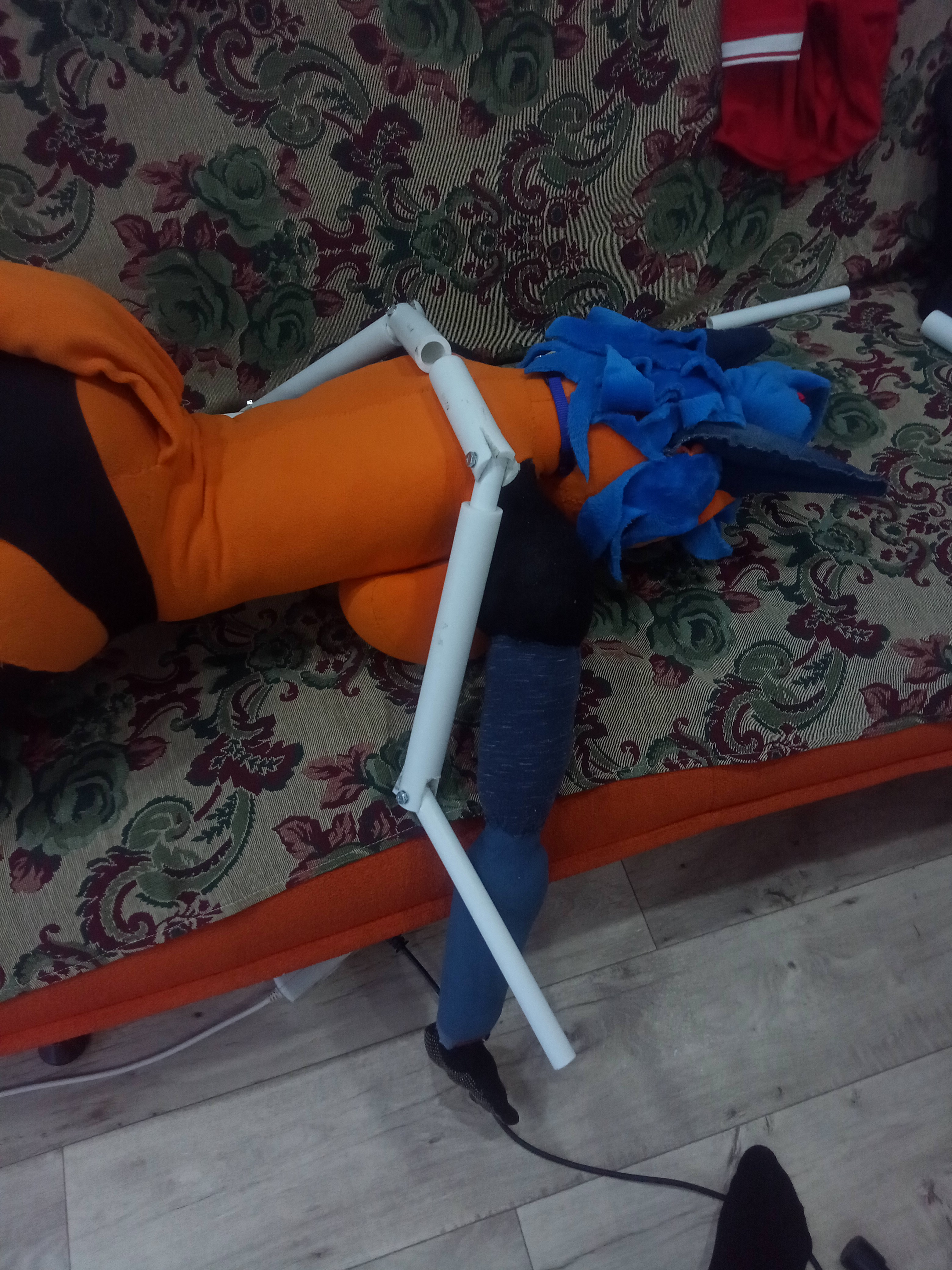 я в общем сшил ногу.... еще вчера. но выглядит она прям хуёво. Зато я теперь лучше понимаю, как ведет себя ткань... в общем надо все переделывать. Выкройки ног, рук и головы - скорее всего полностью. может голову не нужно. Форму надо упрощать еще сильнее. Возможно надо посмотреть, как раскраиваются уже существующие игрушки зверей или фурсьют-головы. Потому что то, что получилось у меня вышло больше похожим на мешочек картошки, чем на ногу.