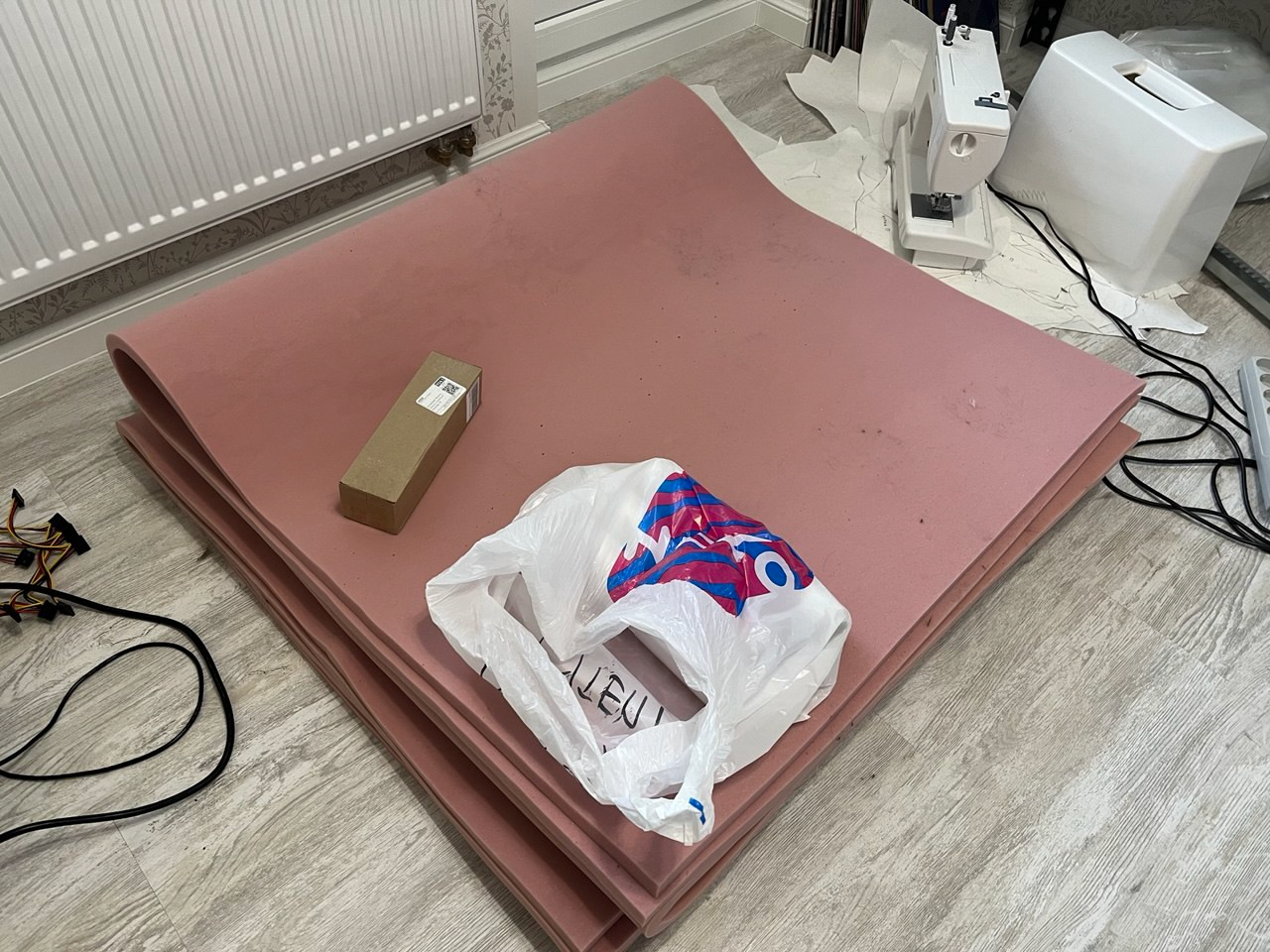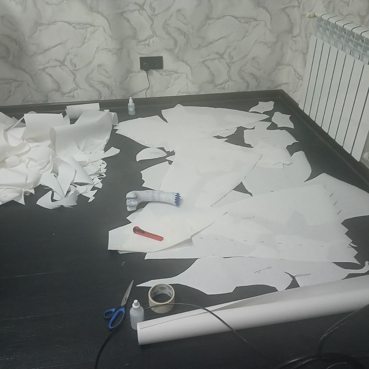 съездил купил флезелиновый рулон в леруа. Решил что корячить проектор на потолок идея говна, буду проецировать на стену. Рулон 1х25м, это примерно как 20 листов А0. Буду проецировать на лист закрепленный на стене раскройку плюшифая, а лист потом вырезать и переносить на ткань.