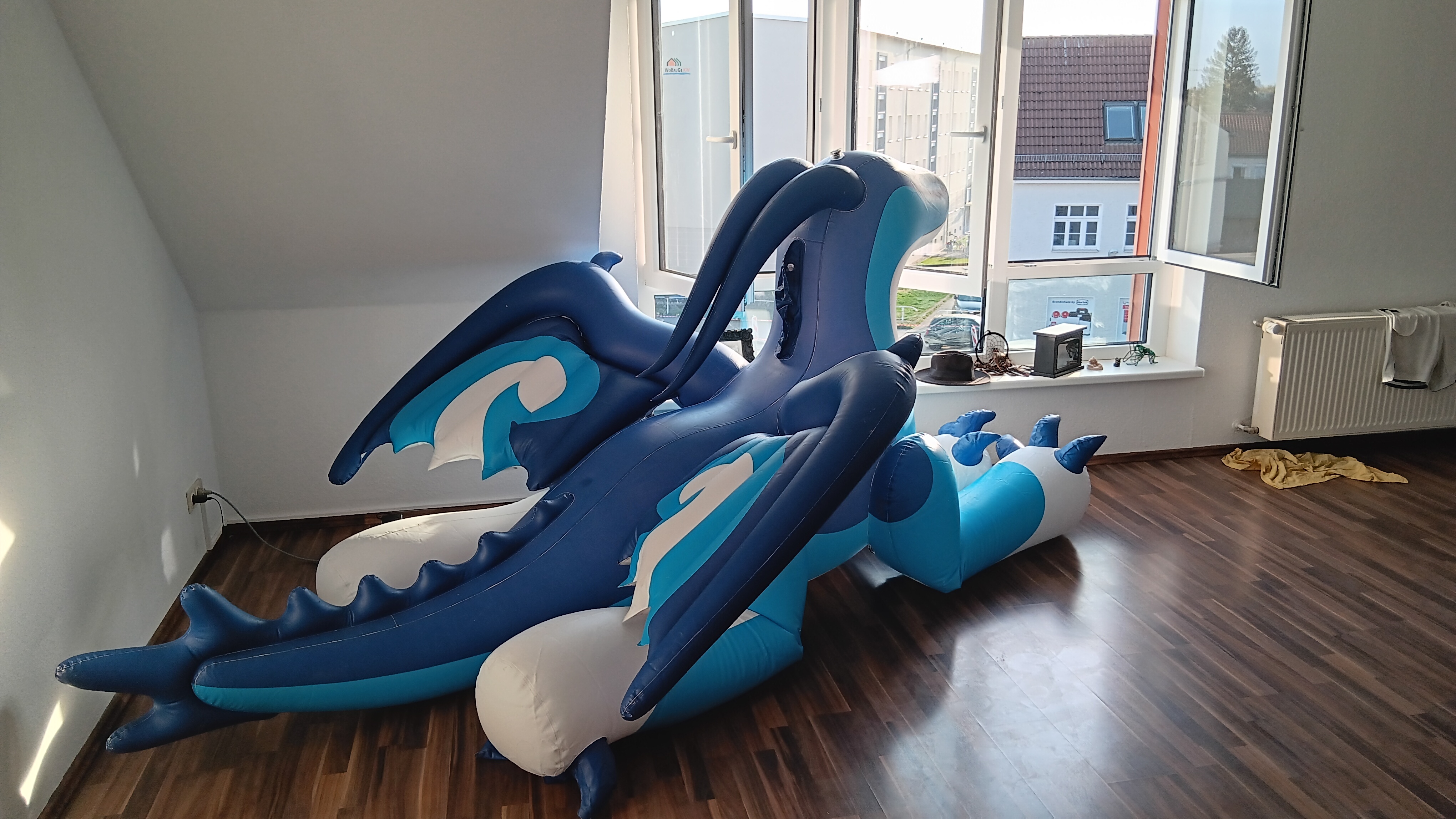 >>404423 Гуглишь компанию hongyi. Дописываешь blue inflatable dragon Находишь подобные картинки. Ну или я могу тебе в телегу кинуть. Гуглишь компанию BeiLe. Пишешь им на англ, что хочешь такого дракона. 0,4 мм толщина винила, лапы, гребни, рога, кости и перепонки крыльев - отдельные камеры. Ибо заебешься проколы искать. Покрытие - digital print, но мб они альтернативу подскажут.