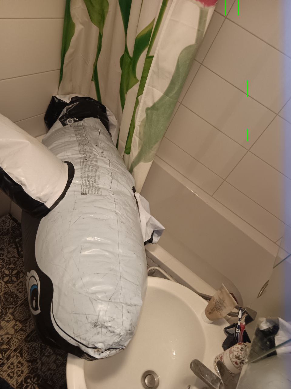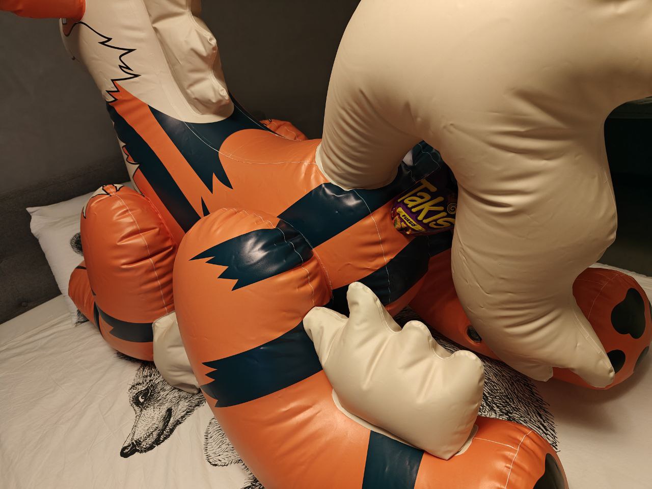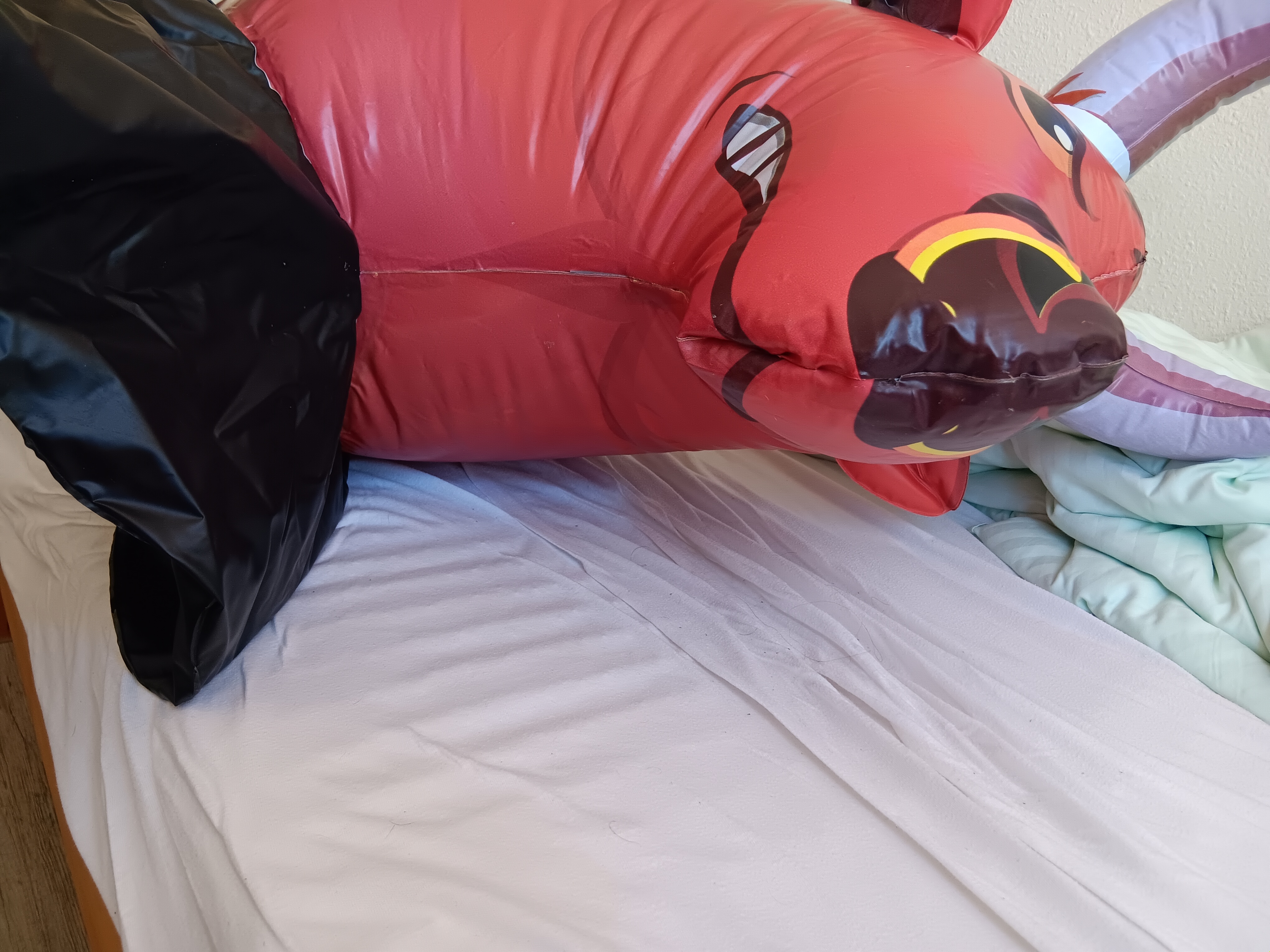 Ну шо, касатка заклеена обратно, всё, что надо надуто, прорезано и оттрахано. По ощущениям волшебно, но нужно смазку, конечно, хотя и слюна подойдёт, благо, ничего не впитывается нигде. Жаль, краска говно, если часто надувать-сдувать, то будет ужасно выглядеть. Дырочки все скрытые, можно на речке купаться, только не надо её животом кверху переворачивать. 4 отверстия, всё шикарно.
