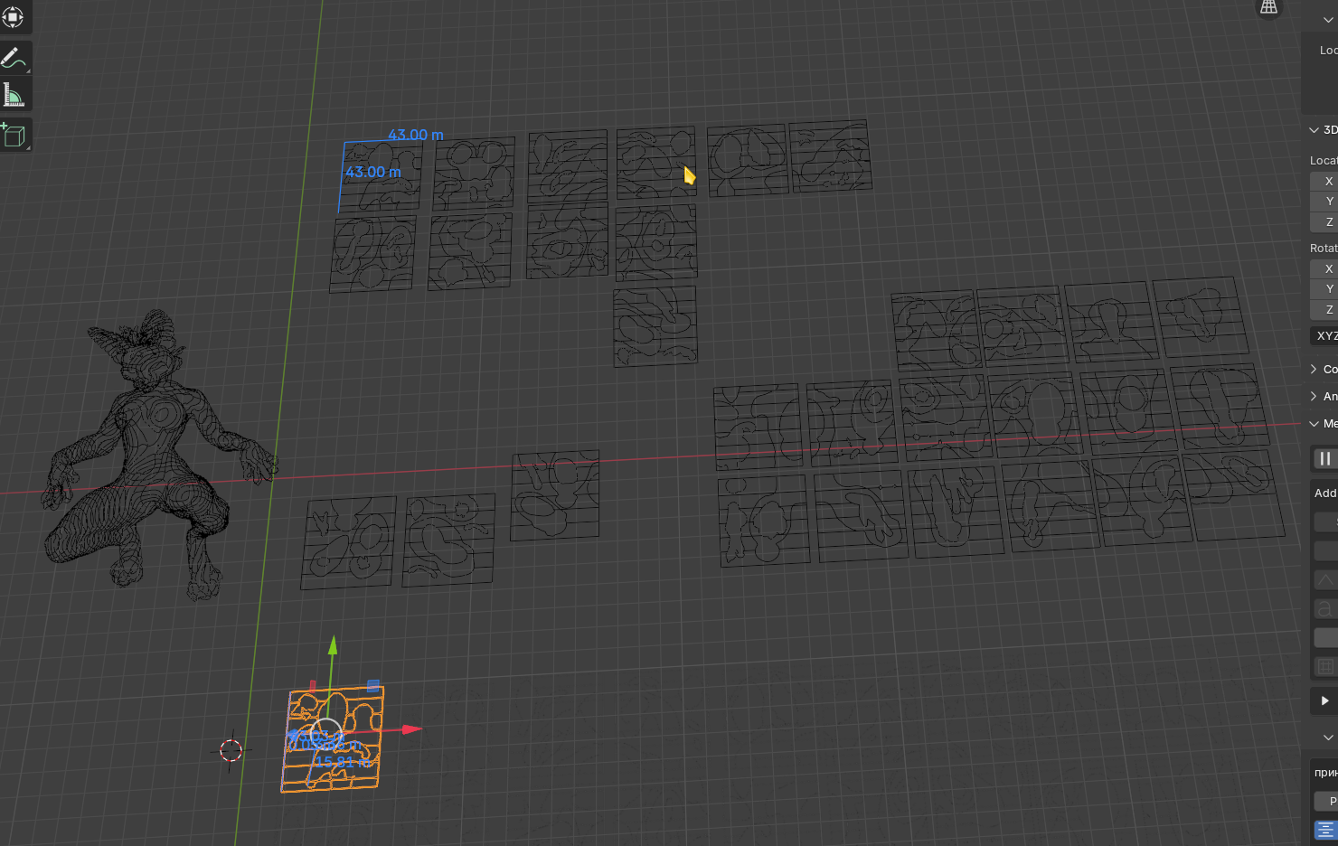 Раскройку пришлось сильно упростить, прям до крупных полигонов. С тем же успехом можно было упростить по максимуму в блендере и сразу настоящий размер раскраивать. И, думаю, надо было отказаться от зигзагообразных швов между частями тела. Ладно, посмотрим, что выйдет. Но голова явно будет не такой детальной, как я хотел. И лапы оказывается такие здоровые получились... Думаю, с лапы и начну.