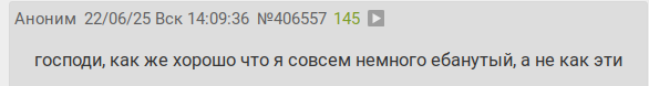 А вообще охуеть, 😠 сперва обрадовался что ух, бугурта сочного фуррёвого принесли раз столько постов. А тут опять этот мазохистичный шиз самобичеванием занимается. Пиздуй уже в б анонов донимать, там тебя обоссут куда лучше и внимания нафармишь побольше чем на этой мертвой доске (