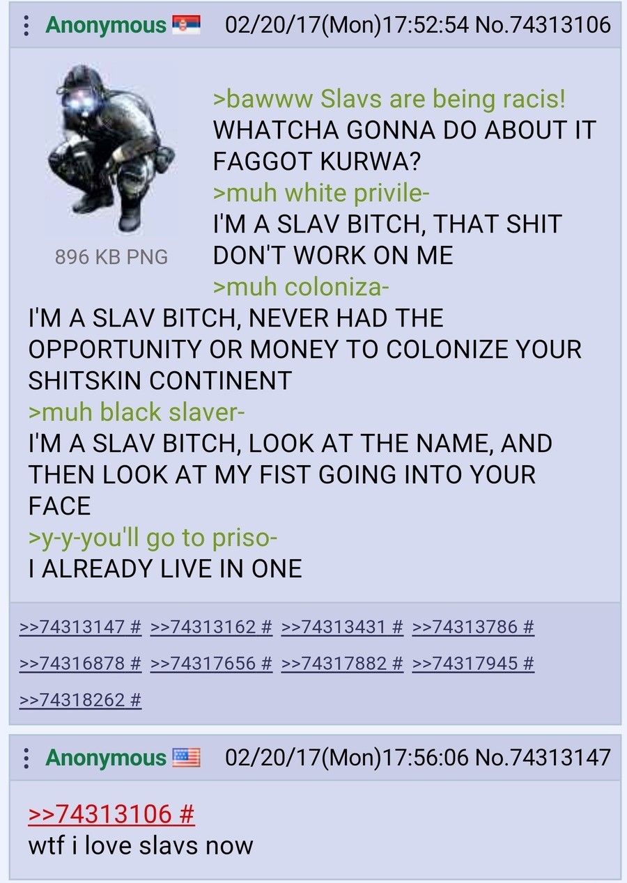 >>414135 Нести конечно стоит. Но хотя бы по хронологии скрины как то разбить правильно, а то непонятно что кто кого и как. 4-й пик, А в чем он собственно не прав? А то есть такие люди которые сами про всех шутят самым разным образом, но как в ответ про них скажешь нигга, то у них тут же начинается истерика.