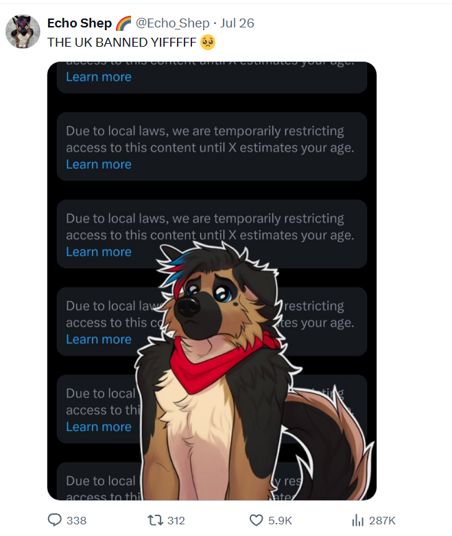 >>414450 Если бы только британский, у меня вон гасит весь нсфв несмотря на любые настройки впна и трюк со сменой страны в настройках твиттера уже пропатчили, судя по визгам многим так же прилетает за компанию непонятно почему, и остаётся надеяться, что интересующиеся политикой европейцы смогут добиться отката этой хуйни.
