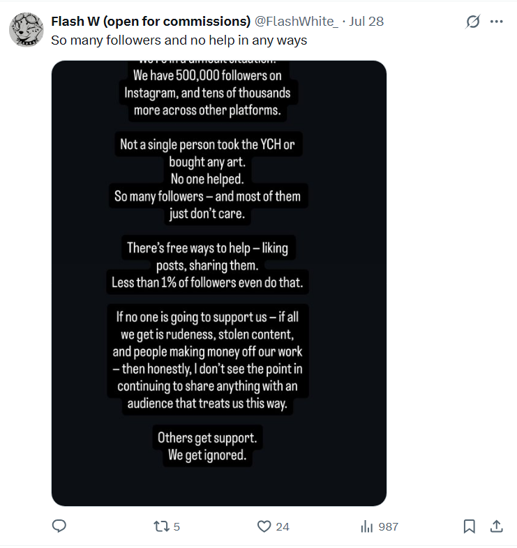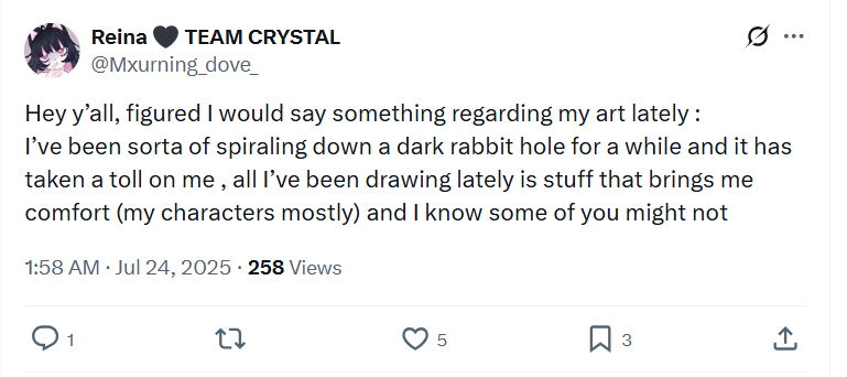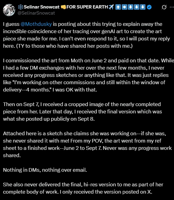 Чел пропустил свою комиху через ии и сделал охуенную гифку, но что было потом? Конечн тонна говна от худа, травля, отмены и угрозы А гифка то сасная вот тут гляньте https://x.com/SelinarSnowcat/status/1976916141676372253