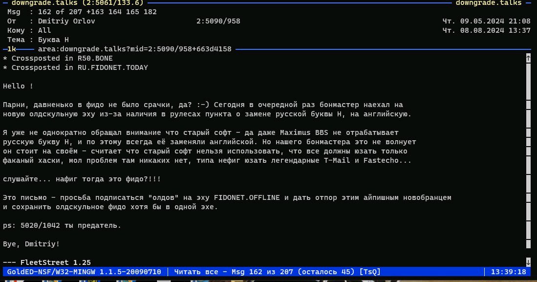 P.S. Как писали …цать лет назад в RU.LINUX Frequently Asked Questions: «…написание писем в эху есть самовыражение, написание писем нетмейлом есть техническая поддержка. Первое бесплатно, второе платно. Подумайте об этом».