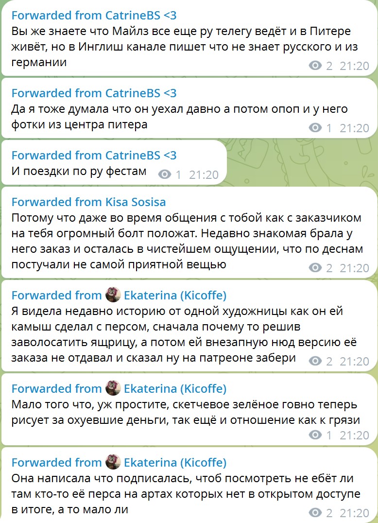 >>415873 >майлс Любит казаться "своим парнем", при этом будучи чсв-щным хуесосом. Он как-то начал выкладывать фотки бомж-еды в том самом канале для русскоязычных, я пошутил в комментариях, написав: "— когда не выкупили лот на 5000$", ну он меня и забанил. Ещё может просто молча твой комментарий снести.