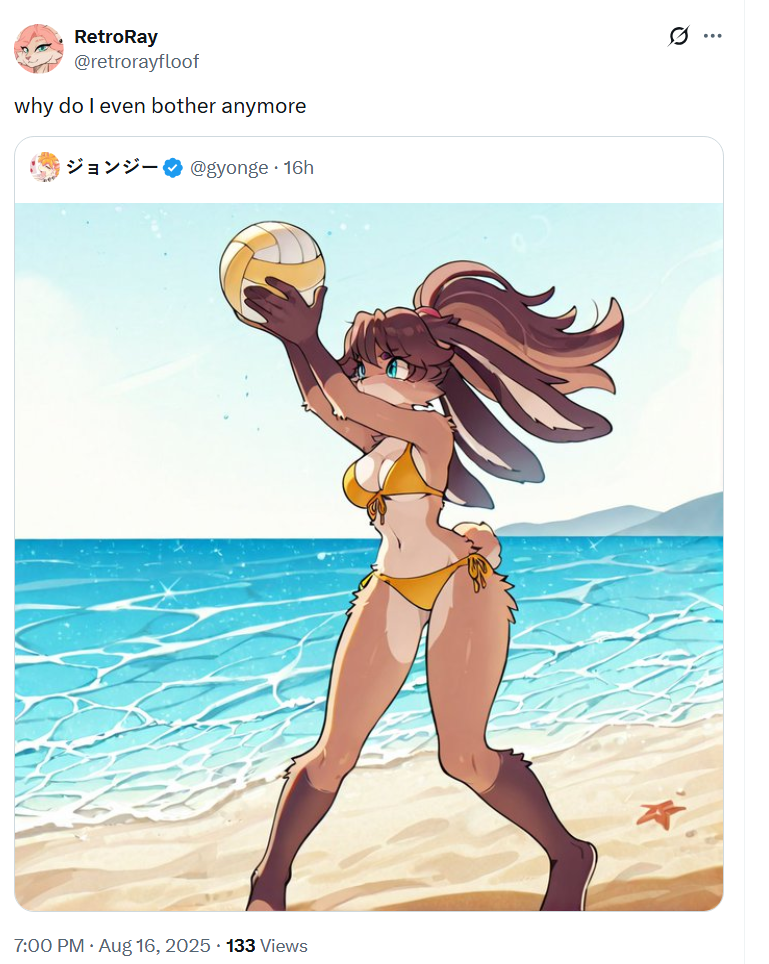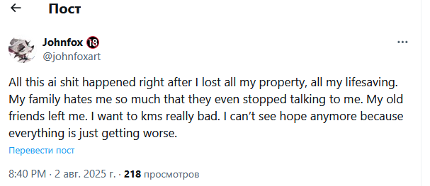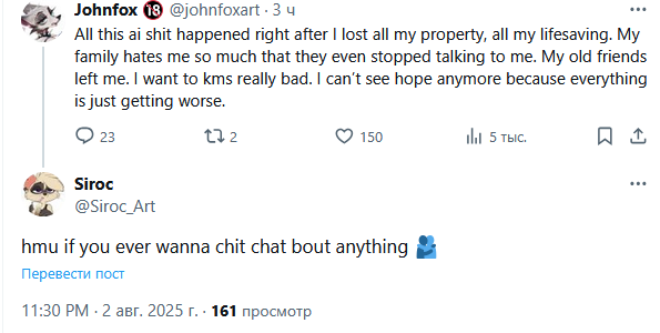 Я уже говорил и буду повторять, что на замену ненависти к лгбт и сжв придёт ненависть к нейросеткам. Новое поколение должны ненавидеть все старые и нейронка в это идеально вписывается. Да, лгбт и сжв это уже старый умирающий тренд выросшей молодежи.