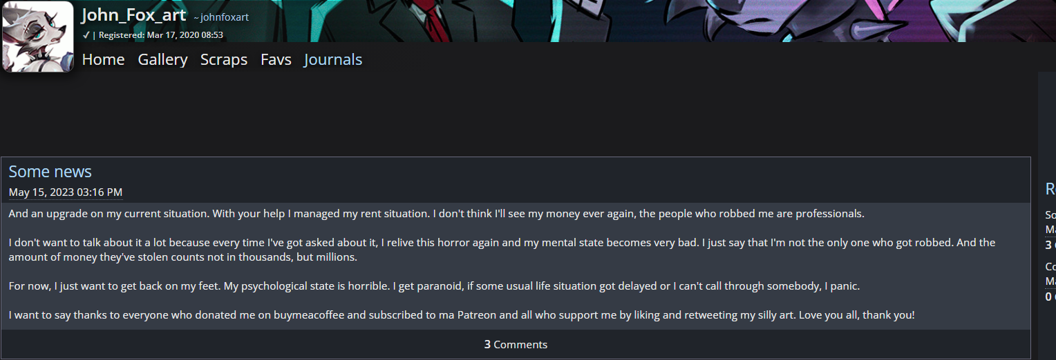 >>425704 Мне чет кажется что это тот самый чел который устроил крестовый поход против художников барыг. Вряд ли он считает подобный вид профита хоть в чем то достойным.