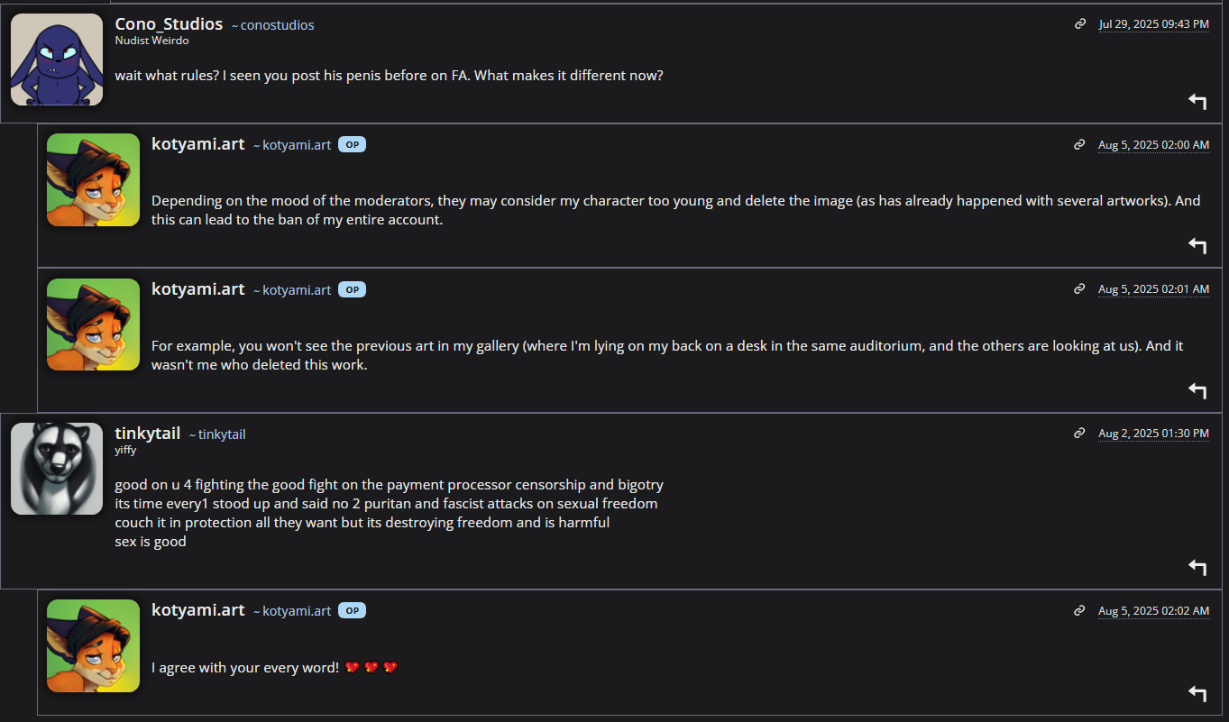 > теперь никакой порнухи не будет вообще Труъ-художники никуда не денутся, а продолжат творить как и раньше, радуя людей. А вот всё говно наносное, что паразитировало на комьюнити, развеется.
