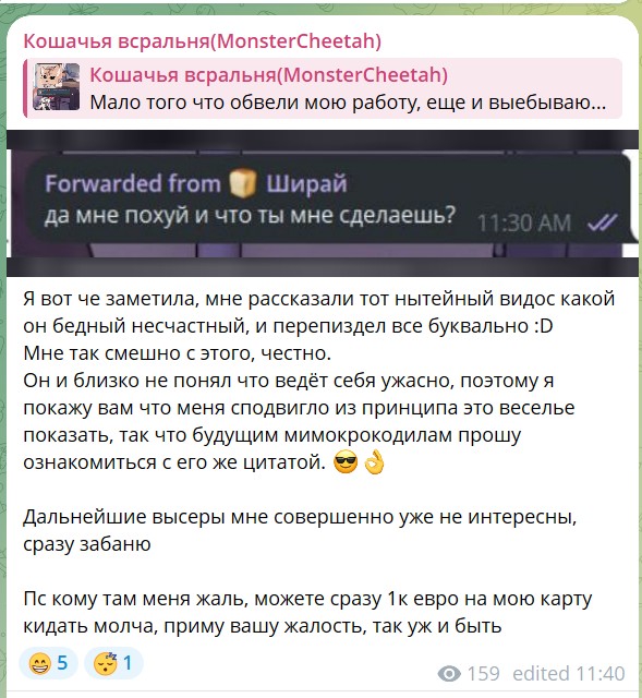 >Первым заговаривает про деньги >Агрится, когда рисовака упоминает то же самое, про что он говорил. Как она смеет писать эту грязь, про которую я первый заикнулся?
