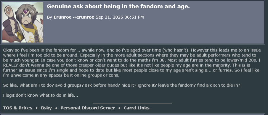 >>423515 Мне 40 и мне похуй. Онлайн-группы как правило похуистичны к твоему возрасту если у тебя есть минимальное наличие мозга, вчерашним асоциальным порриджам как раз тут куда сложнее.