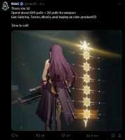 типа ебануться я кинул в нее 70, и в волшебную палочку 68 выпал только 1 персонаж (она), все остальное оружие ебучее. даже у ляоэльфа не такая гача жадная, хоть дают подышать девчатами