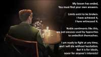 Twisted Smile Текст от лица Кольфи. Тут в целом тоже мало чего интересного. Перевязывая Шкикана, случайно кинутая им фраза напоминает лоляхе о ком то похожем на него, "о ней". Вторая часть начинается с жалоб Кольфи на её пистолет, что не предназначен для настоящего боя. Ей нужно что-то помощнее чтобы разбираться с варжагерами, иначе все может повторится как тогда. Когда-то у неё был начальник, Анфия. Начальница хорошо к ней относилась и дала имя. Во время очередного колапсого шторма на дислокацию её мед команды напали варджагеры. Анфию убили на глазах Кольфи, сразу после того как та засунула её в машину на автопилоте. Вернувшись обратно Кольфи обнаруживает лишь песок, и решает поискать помощи у поселения людей неподалеку. В поселении ей дают средство коммуникации, в обмен на медпомощь местным раненным. Связавшись с начальством, в ответ она слышит местный аналог "мы вам перезвоним", что её сообщение принято и просьбу вернутся к мед тиме. В самом же поселении, во время работы, она получает благодарность от одного из пациентов, и инфу что её собираются разобрать продать по частям, и ей нужно бежать. Она успешно сбегает, но получает ранение. Последние что на видит перед тем как отключится это чью-то темную фигуру. Когда она приходит в себя, она видит Полуденицу. Та починила Кольфи с целью получить информацию о её медицинском полке. Они заключает сделку, Кольфи получает энергию, а взамен дает ей информацию и работает шнырь-курьером. Также милфа дает лоляхе совет о том, как вести дела с людьми, и учит фирменной улыбке. Спустя некоторое время работы, Кольфи таки заебывает Полуденицу просьбами установить ей файр контрол кор, и та ей рассказывает о том, кто часто сует нос в такого рода дела, о Шкикане. Кольфи заинтересовалась, и Полуденица отправляет её вместе с припасами к нему. В заключительной части, она заканчивает со своими воспоминания, и с перевязкой Шкикана. В мыслях она называет его хорошим человеком, а хорошие люди должны жить. И, возможно, ему немного можно доверять.