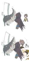 - «Верно. С этого момента я являюсь твоим надзирателем, приставленным, дабы служитель Закона следил за таким преступником как ты и –КХА- какого святого ты куришь эту дрянь?!»