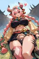 У коровы просто дохуя ненужных деталей, ну или артефактов от нейронки: разные узоры на рогах, бантик, то ли чокер, то ли тату, куча брелков на сапогах, заколки и ободок на голове, какая-то хуйня на мини юбке. Такое чувство нейронка у них в гипердетализацию обучена. Я это еще заметил, когда у Навии ШТУРВАЛЫ на платье. Зачем они там? Она даже с кораблями никак не связана!