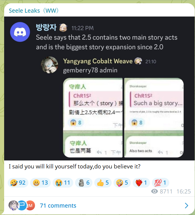 >>5079386 Ну так это по Seele дизинфа. А с TG вопрос, где он это писал. Хотя он вроде бы потом пост выкатил, что не получал реального сюжетного контента и единственный, у кого он есть: степликер.