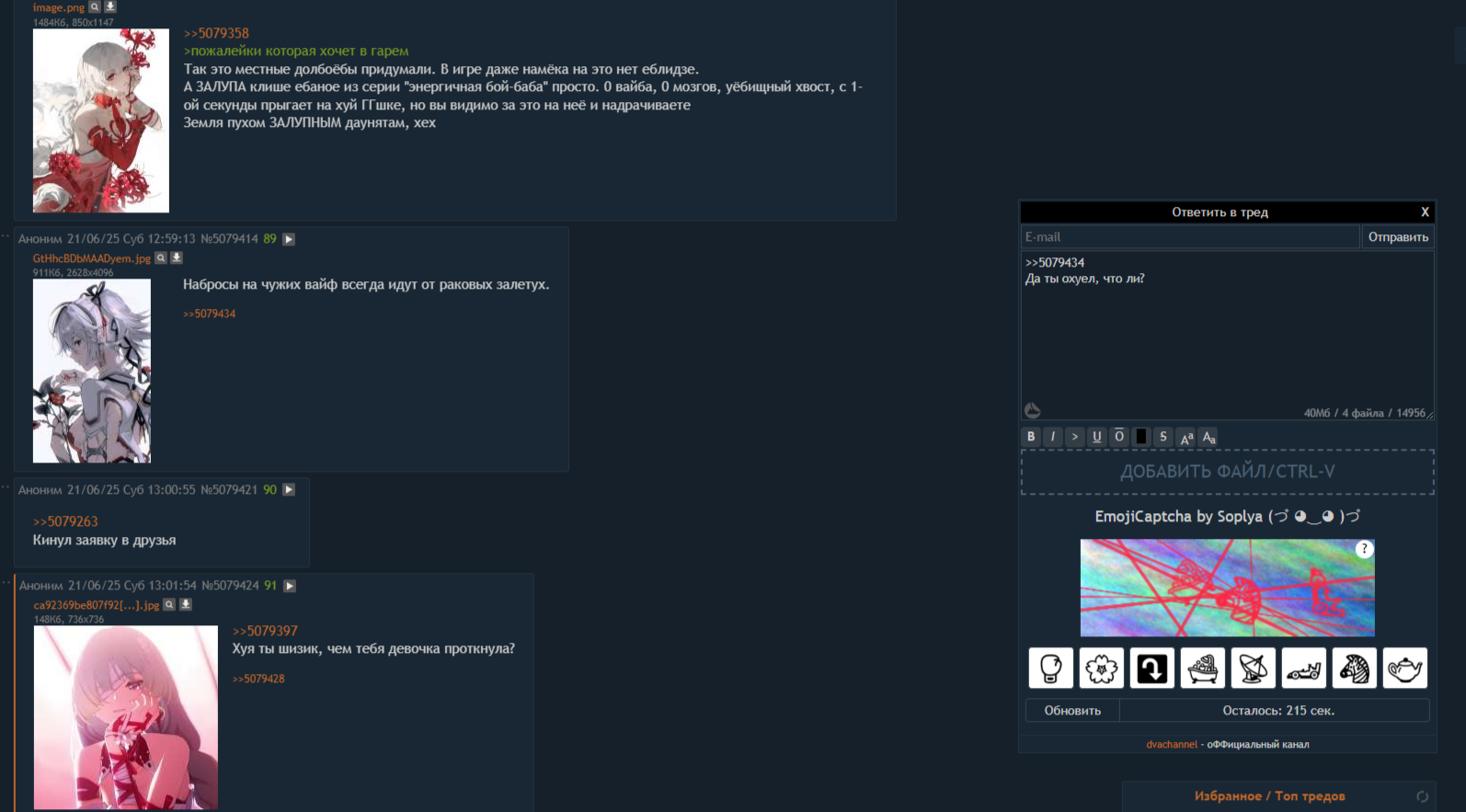 >>5079414 Сказал кумошиз который пару дней назад бан словил за наброс на Зани. Надеюсь ты это говоришь после того как ты подумал над своим поведением, а не просто серишь.