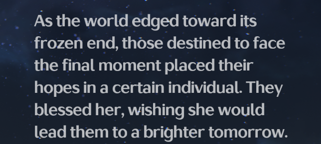 Впрочем, я уже говорил: сюжет с 2.0 стал хуже писаться. Вкладываются больше техническое исполнение: катсценки-цгшки etc. Но у Ляо как бы также: есть парочка годных квестов на локацию (не играл в геншин, но играл в Мужевоз, в качестве примера назову квест Чадвика), а все остальное — фулл Агуша, где ты пробел пытаешься не сломать.