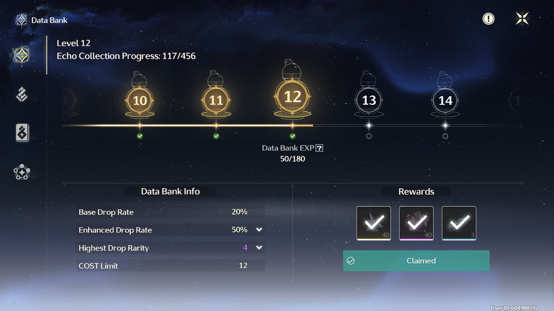 >>5082720 В факе есть картинка по эхо. Вкратце: опыт в терминал дают за коллекционирование эхо (за каждую редкость каждого эхо по 5 очков) + есть квесты в гайдбуке F2 (прокачать персонажа до опр. лвла и т.п.). Свою коллекцию собранных можешь посмотреть в дата банке вторая и третья вкладка.