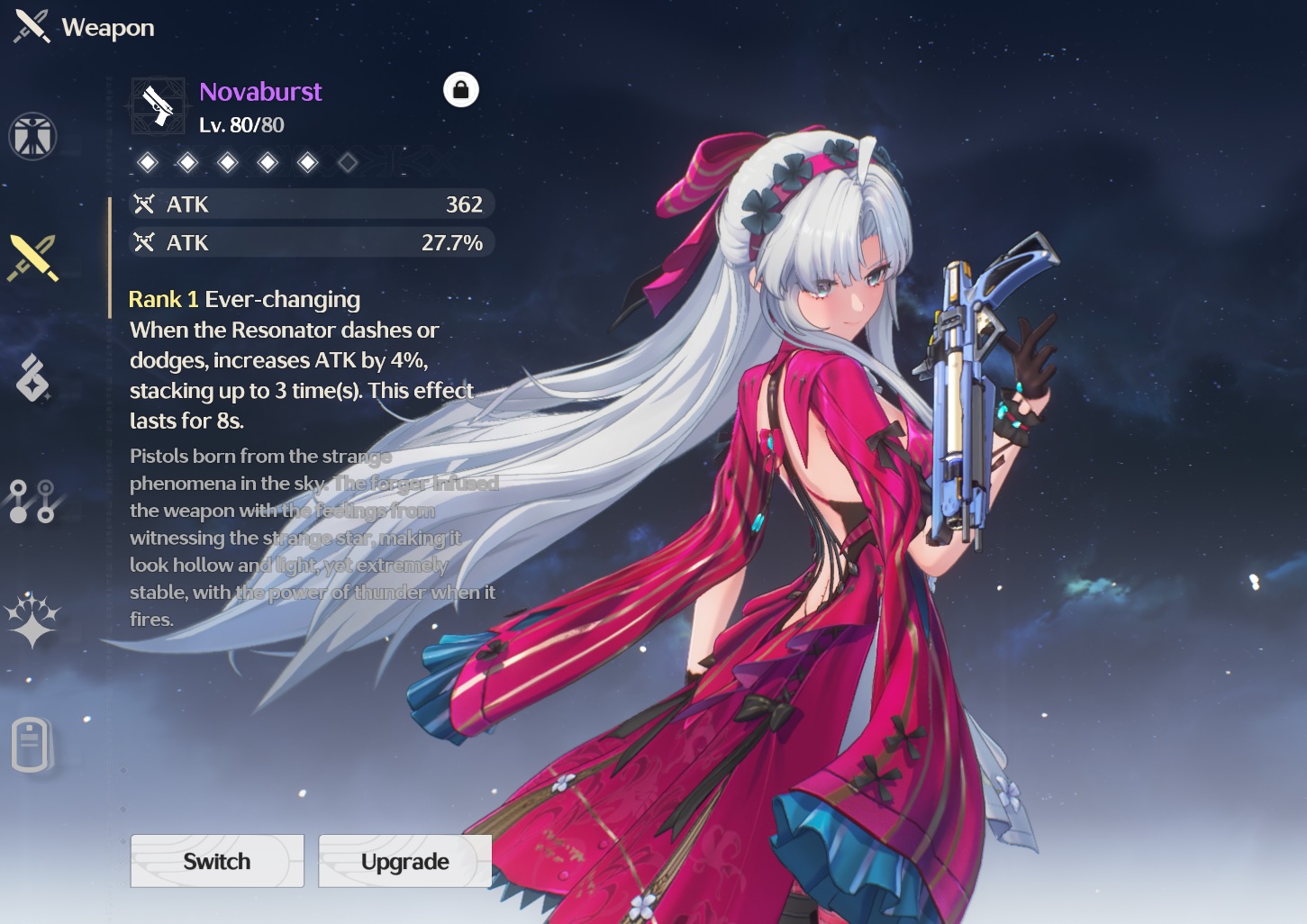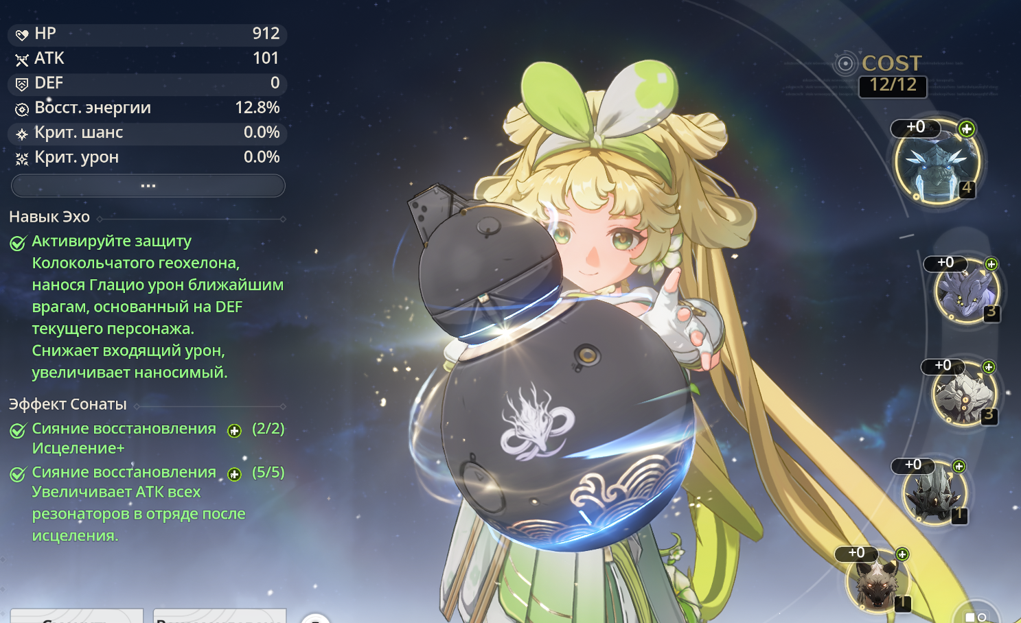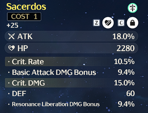 Base ATK 587 | Crit Rate 24.3% Passive - Increase ATK by 12%. Within 12sec of dealing Echo DMG, Resonance Skill DMG by 32%, Echo DMG is Amplified by 32%, and DMG dealt will ignore 8% of the target’s DEF (STC)