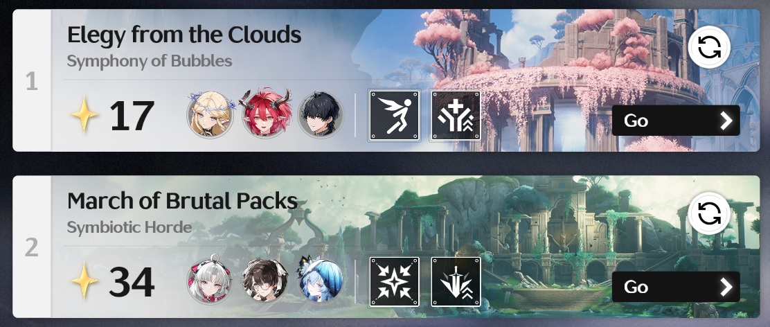 First half: Phrolova, Roccia, Taoqi, Lumi, Yaunwu Second half: Cantarella, Brant, Danjin, Mortefi, Yangyang Note: Not 100% sure on 4 star accuracy -Ranny-