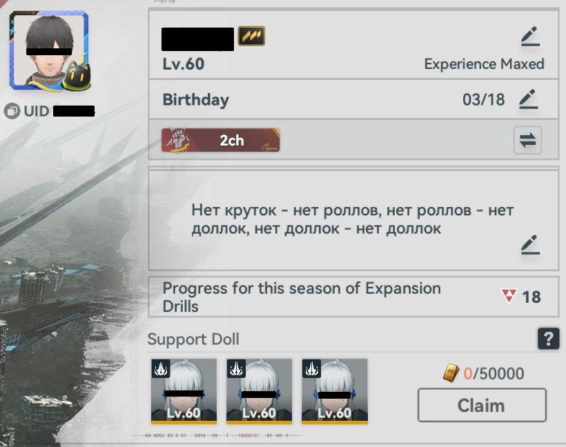 Хммм... Вот пока это писал, задумался. Вот чтобы докрутить Клюку до В6 мне надо влить 20-30 тысяч в ГФЛ2. В то же время, я могу за 5К взять Стеллар Блейд с графоном, геймплеем и оптимизацией. Или вообще бесплатно скачать Эксодус. А за что я, собственно, плачу в ГФЛ2? За циферки на мониторе которые исчезнут навсегда когда игра ЕОСнется? Ведь рано или поздно её отключат и все. Ну и зачем вливать туда деньги?