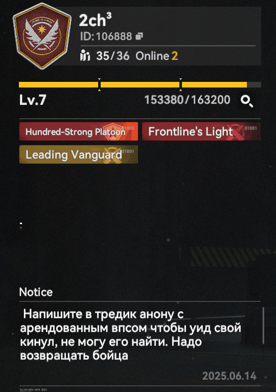 >>5058094 ? Я про левел самой гильдии. Поход на дейлик и трата билета в гансмоке (сам факт похода, автобой не автобой не имеет значения), повышает уровень гильдии. Сейчас главное быстрее апнуть вроде 8-2 уровень, чтобы открыть новые награды в магазе и бафф урона для калсмока. Поэтому те кто не делает дейлики и не ходит гансмок вообще - вредят гильдии. И из-за этого ещё лучше сразу забивать кап игроков.