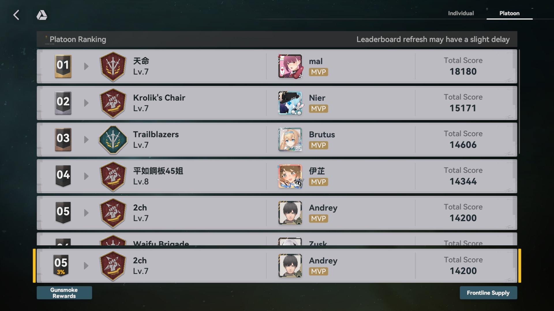 >>5055521 Я на прошлом гансмоке всё ещё играл и делал по 3 билета, в итоге сидел на топ 1 в своём платуне и мы всё равно болтались в 4-5% Сейчас забил хуй и делаю 2 авто а день, мы в топ 3-4% Южмых заебал многих людей уже, здесь литературно нехуй делать