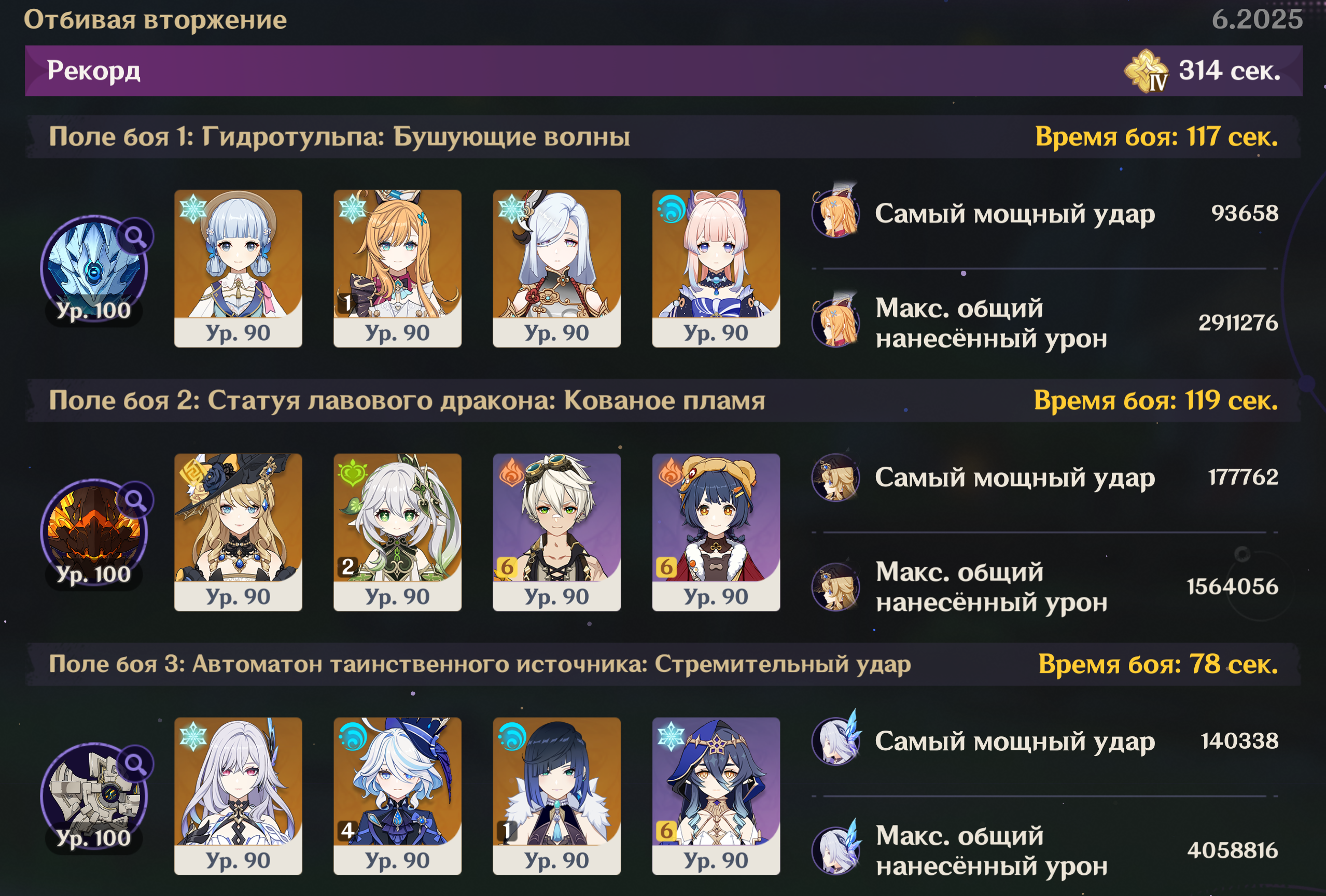 В честь дня рождения Дыньки выгулял ее к лавовому дракону на 5 сложности, пришлось ретраить раз 20-30, но она справилась! С3R1 кстати, эх помню как на ее первом баннере рассказывали, что ее С2 настолько ебанутая, что отключения серверов хватит. Все равно, как бы Ляо ее не паверкрипал, моей любимицей останется.