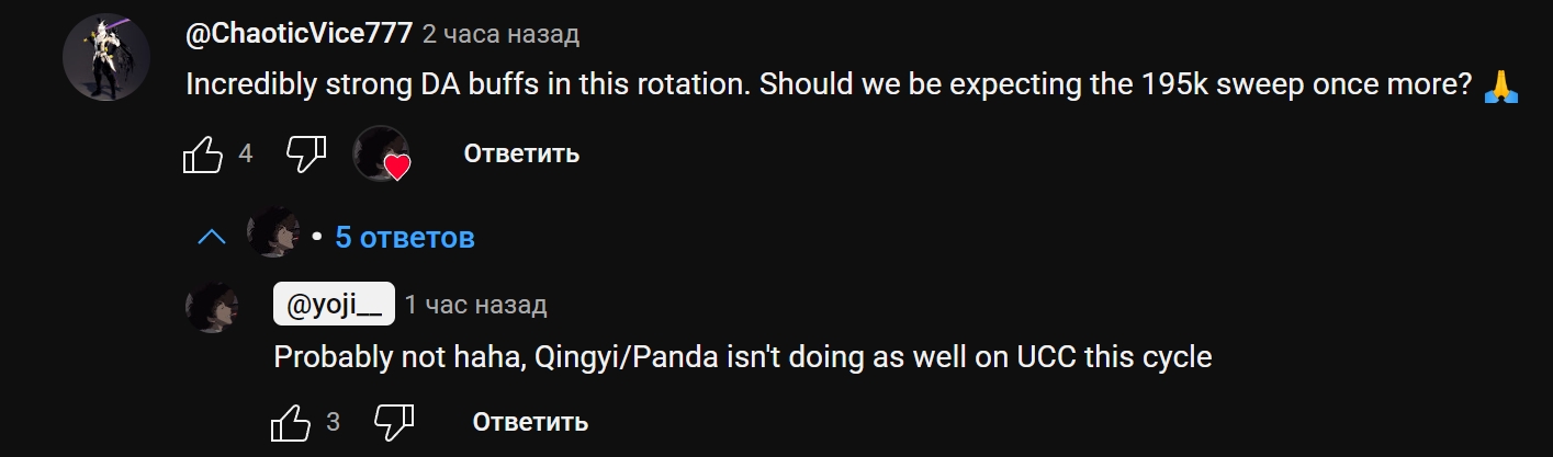 >>5119245 >Есть ли смысл брать Фуфу под Эвелин и поставить ее третьей с Астрой? Лайтер будет лучше для Эвелин, но Фуфу вполне себе вариант. Если есть Коляда, то можно и обождать, но Фуфу удобнее и чуть лучше. Нормальный четверок-станеров под Эвелин нет, но в штурме можно ставить Николь вторым саппортом Николь-Астра-Эвелин. Это в любом случае будет лучше копиумного станера даже не смотря на то, что Эве станер желателен. Но конкретно под Помпея в штурме можно и с Николь. По крайней мере у меня с Николь результаты даже чуть получше получались, чем с Колядой. >Хорошо ли выглядит Юдзуха с Мияби? Если не хорошо - то чьего рерана ждать? Хорошо. От Юдзухи ждут, что она будет очень хорошим саппортом на уровне Астры, но только под калномалию. Крутить, думаю, надо обязательно. >Есть ли смысл в прокачке Каломассы? Если есть ресы, то можно и вкачать, но он хочет норм станера еще больше, чем Эва. Хотя, первое время можно и с А-Энби поиграть. >И стоит ли крутить Алису? Думаю, да, если нравится. Ну либо подождать, кто будет после нее. Если Орфей сделают дамагером, мб, ее забрать будет лучше.