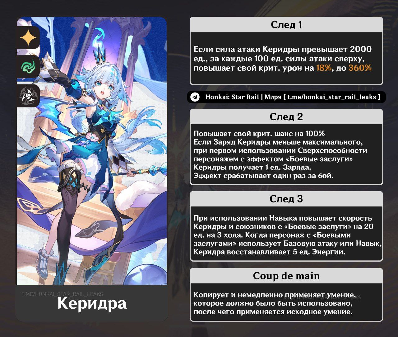 ◈ Базы данных ‒ https://hsr.honeyhunterworld.com/?lang=RU | https://hsr.yatta.top/ru/archive/avatar