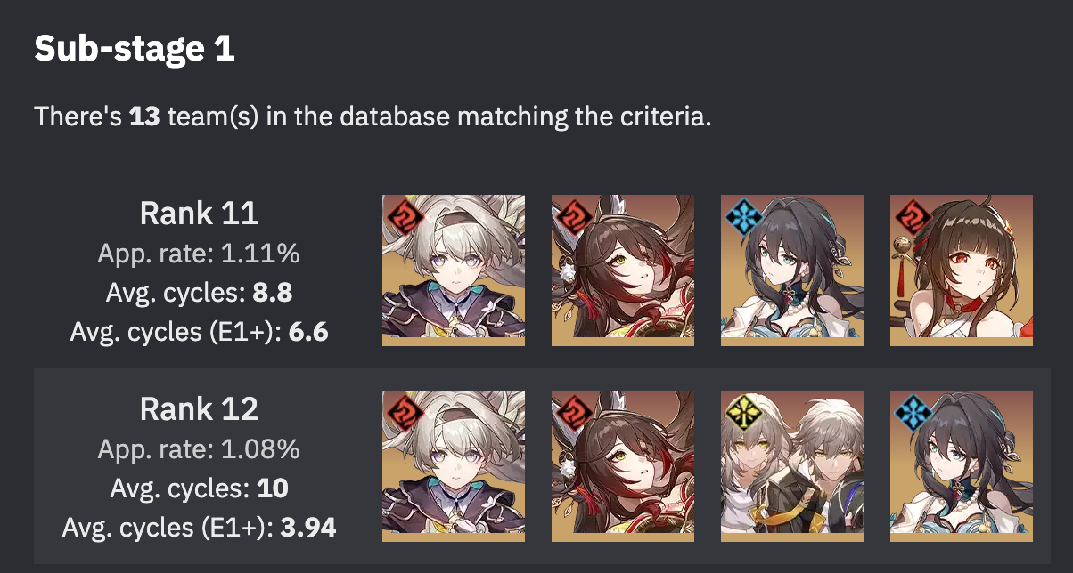 >>5137433 Довольно большой app.rate, тут явно не мало данных. Пример с мало данных вот на пике, это или 1 или 2 чела типа прошли и команда стала топ1 по циклам. >>5137452 Все равно там не будет столько урона как с гг именно на жуках которым гг еще и полоски сносит очень быстро. Ну и сам вопрос не в уроне, а в том что эта команда дольше 2-3 циклов не проживет без лечения, там вся идея в том чтоб нюкнуть жука максимально быстро.