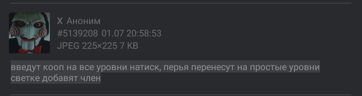>>5139111 > При этом у меня нет какого-то осуждения Ляо. У меня есть конкретно из-за театра. Подобный паверкрипный подход ещё кое-как работает в Мужевозе-ззз. Там нужно 3 тимы, и в 3зз не обязательно каждой из трёх тим закрывать за минуту. Но тут ляо из-за своей жадности высрал туалетино, после чего высрал театр, чтобы как-то заставить крутить кал. А теперь ляо и на кал навязывает крутить сигноконсты через уменьшение таймера и увеличения хп в обосранном театре с НАСМЕРТЬ УСТАРЕВШИМИ ПЕРСАМИ В 3зз и Мужевозе не заставляют играть устаревшими персами. А тут с этим режимом не работает эта его инфляция хп.