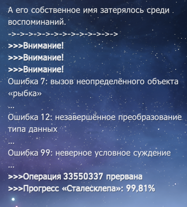 Нус парила с сброшенными с себя нейронами в бездне космоса... Сталесклеп вошел в пространство... они соединили свои порты, а затем произвели вычисления!