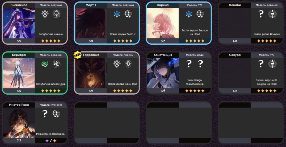 >>5161155 >>5161161 Немного хочу таймскип и лимитных подросших Клару с Хук на баннеры. Сами по себе они ок, но интересно чтоб развитие им какое-то подвезли.